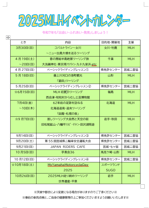 事前の車両点検とご自身の体調管理の上ご参加ください!(^^)!